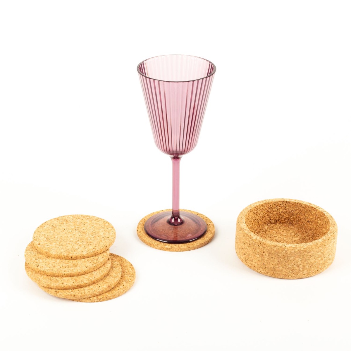 Runder Glasuntersetzer Kork HALINA mit Halter, 6 Stück, natur, Ø9cm, Stärke 0,5cm