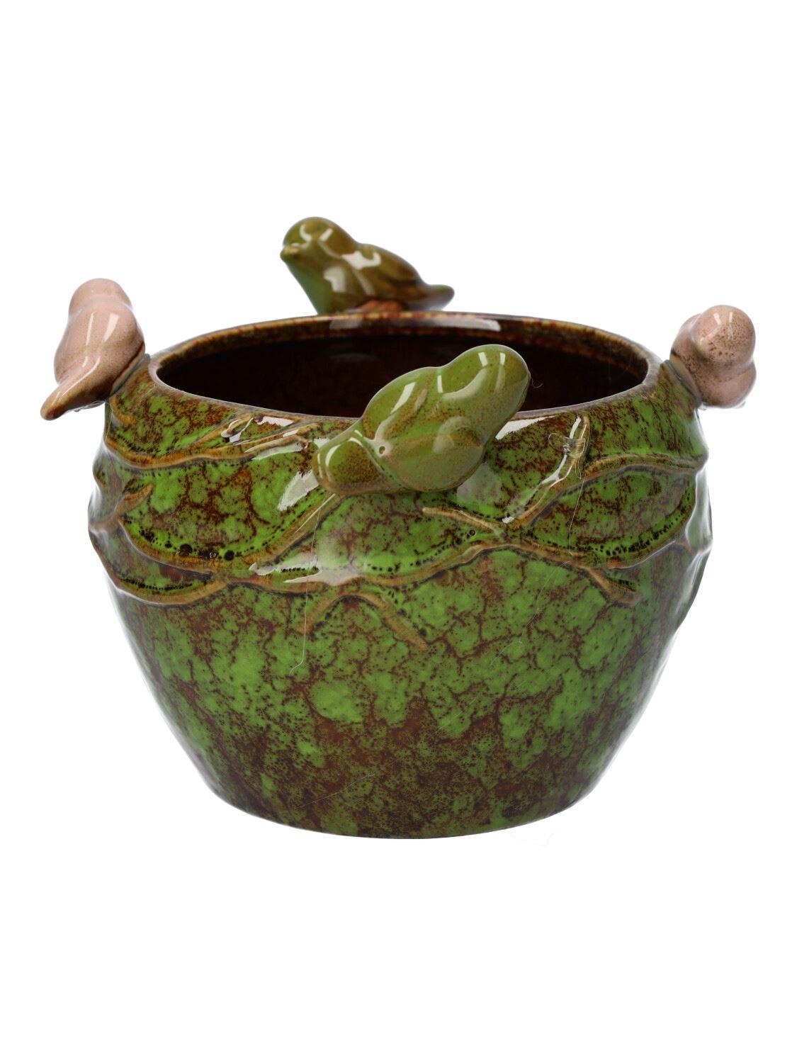 Runder Pflanztopf SARINO aus Keramik, mit 3D Vögeln, grün-braun-beige, 10,5cm, Ø14cm