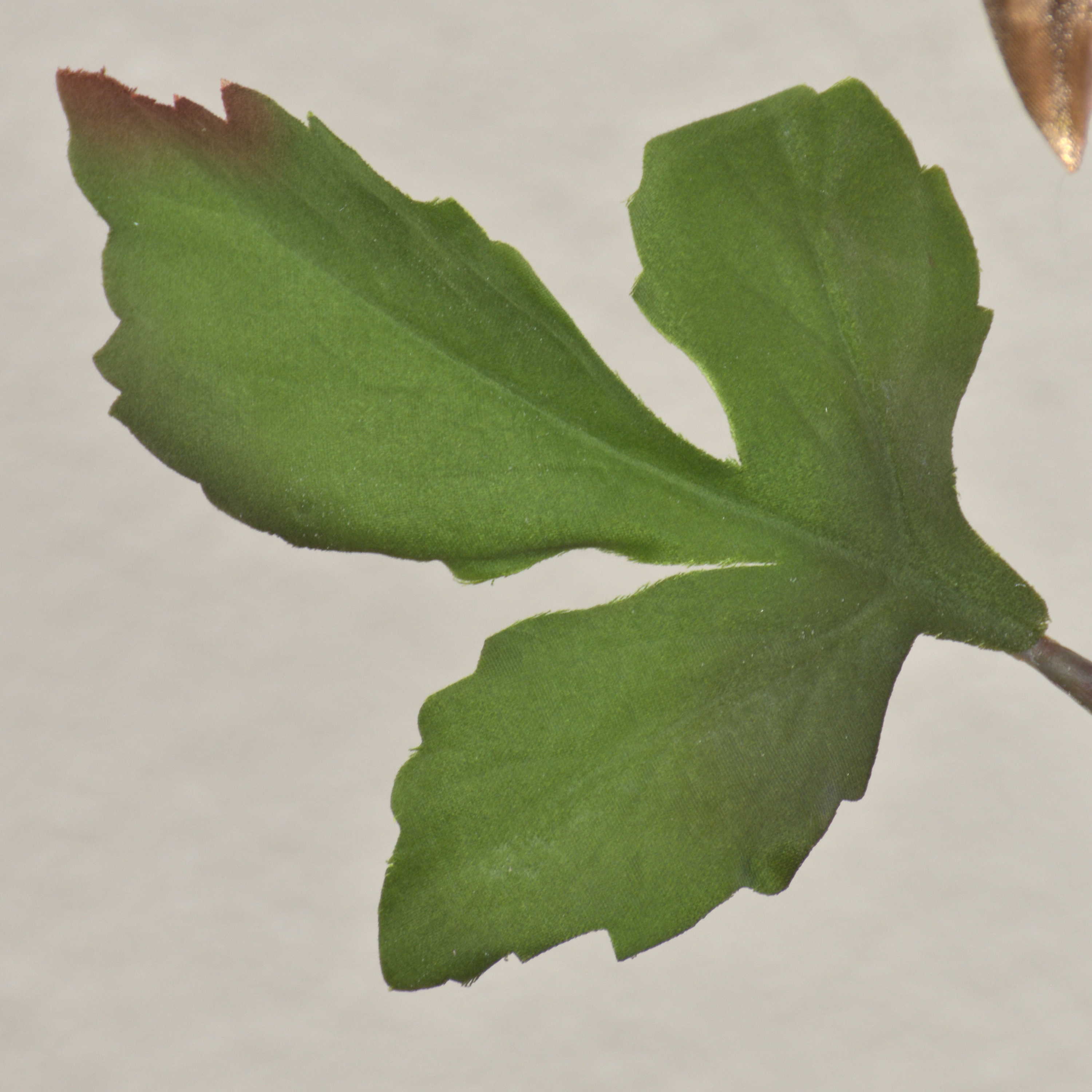 - Mit 2 grünen Textilblättern und samtig / metallischer Blüte