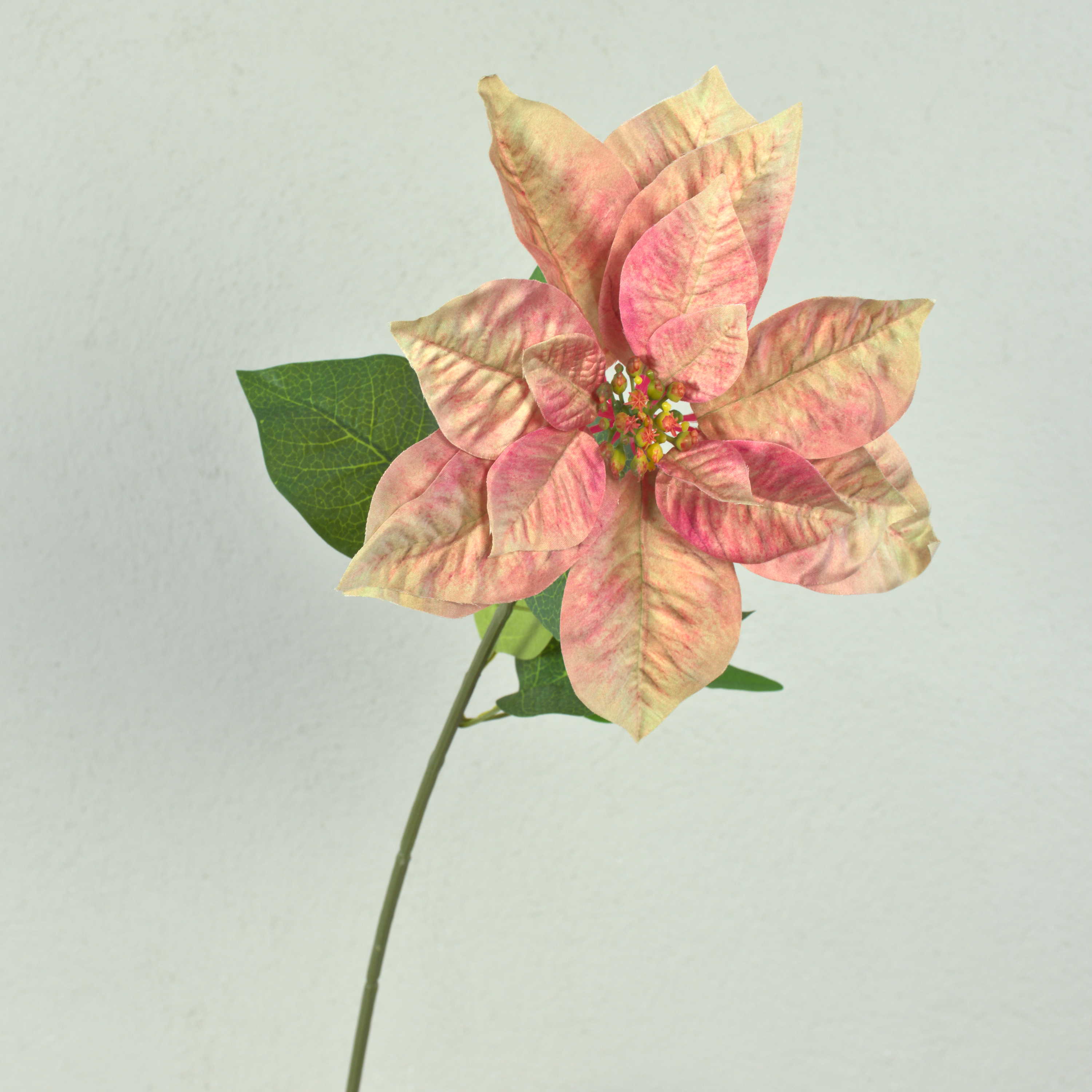 Samt Poinsettia künstlich LIBASSE, creme-rosa, 65cm