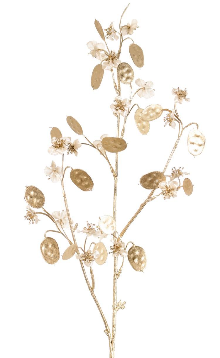 Satin Lunaria Zweig künstlich PINDUS mit Blüten, creme-gold, 85cm