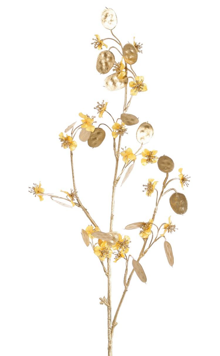 Satin Lunaria Zweig künstlich PINDUS mit Blüten, gelb-gold, 85cm