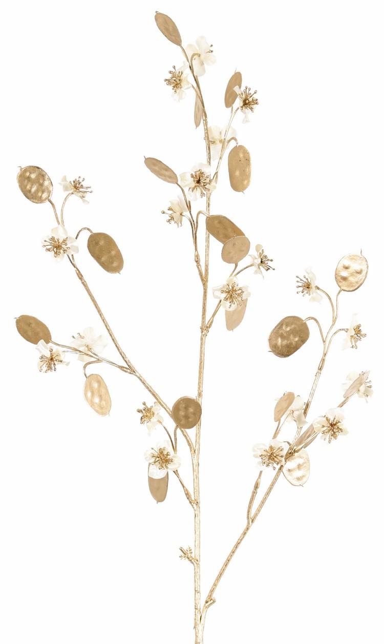 Satin Lunaria Zweig künstlich PINDUS mit Blüten, weiß-gold, 85cm