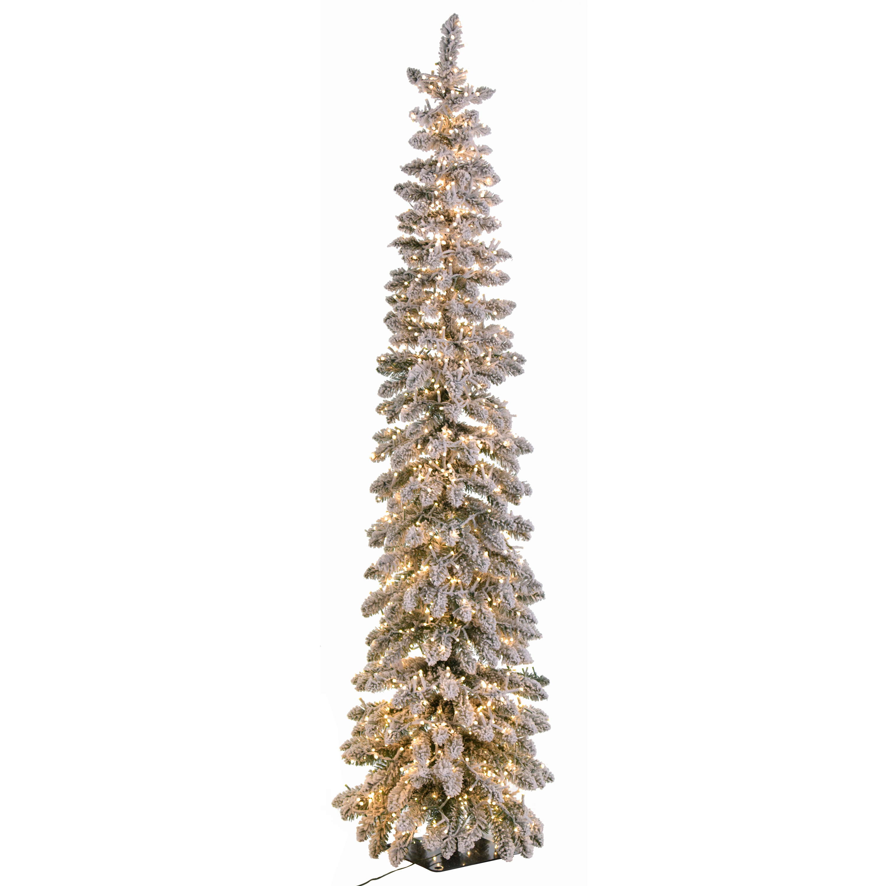 Schmale künstliche Tanne LEKNES, beschneit, LEDs, 180cm, Ø45cm