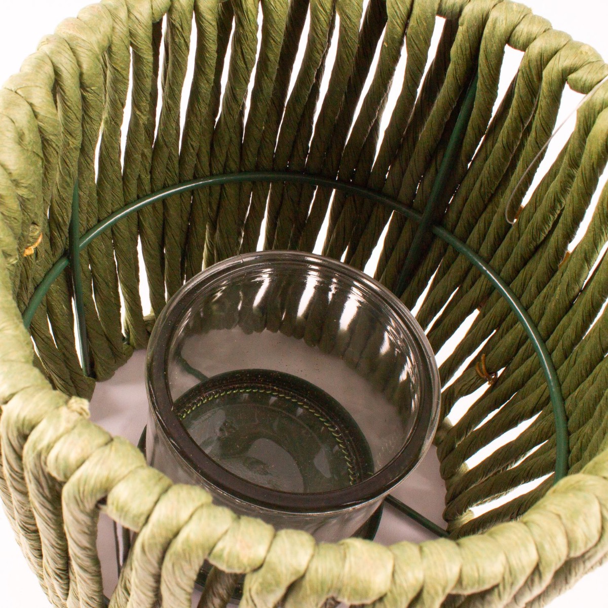 Sisal Teelichthalter BALKHAB mit Teelichtglas, grün, 16,5cm, Ø15cm
