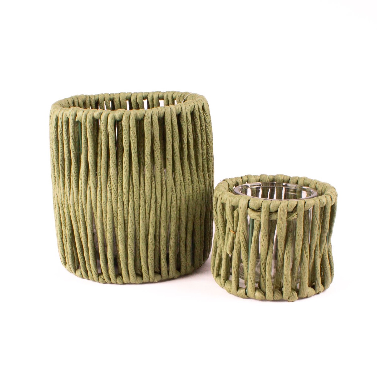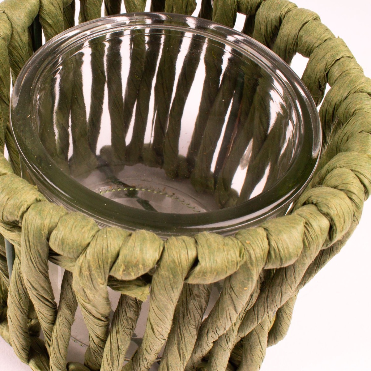 Sisal Teelichthalter BALKHAB mit Teelichtglas, grün, 9cm, Ø11cm