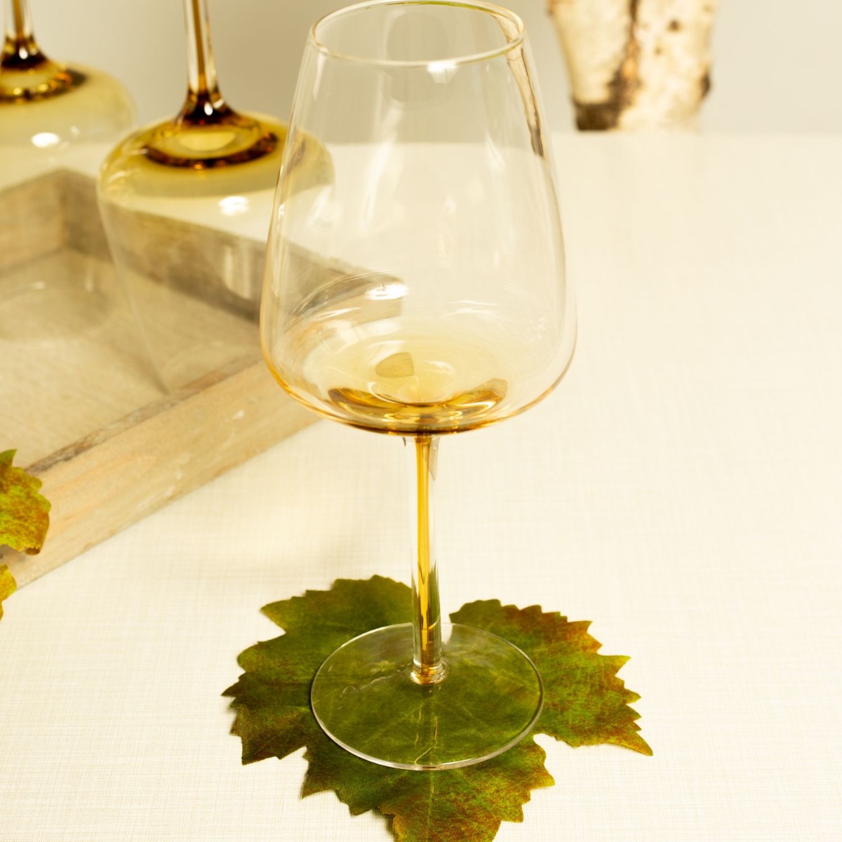 Wein und Blumen! Im Sommer fühlt sich das Leben leichter an. Da gibt es nichts Schöneres als ein Glas Wein am Abend zu genießen. Unsere Weingläser mit einem orangefarbenen Farbverlauf sind ein echter Blickfang und passen super zu der großen Zylindervase mit Struktur. Die Weinblätter sowie der zauberhafte Strauß aus Spätsommerblumen runden den Look ab und erzeugen eine warme, spätsommerliche Stimmung. Shop the Look!