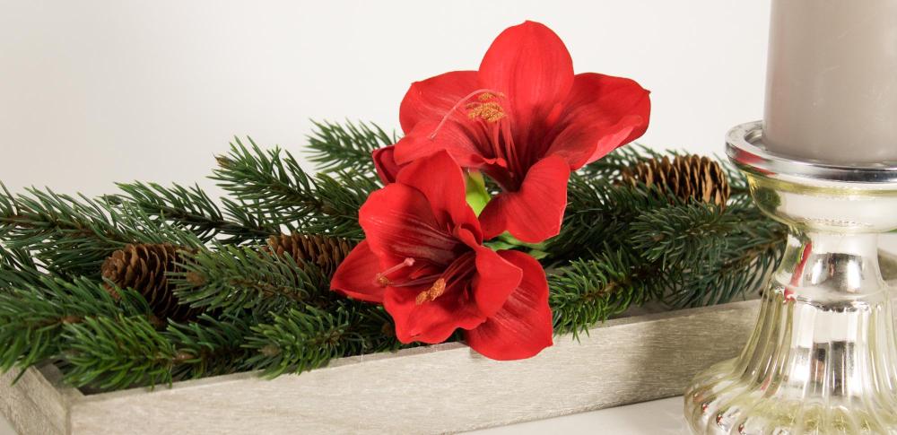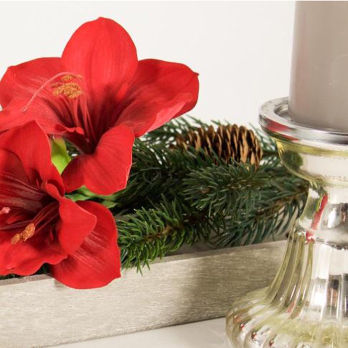 Red and Cozy! Eine sehr einfache aber stilvolle Advents-Dekoration. Das Highlight ist hier definitiv die große Amaryllis, die im klassischen Rot leuchtet und Abends bei Kerzenschein eine warme Atmosphäre schafft. Ein Tannenzweig geschmückt mit Beeren und Zapfen rundet diesen Look perfekt ab. Haben nun auch Sie Lust bekommen auf ein bisschen Adventsstimmung? Shop the Look!