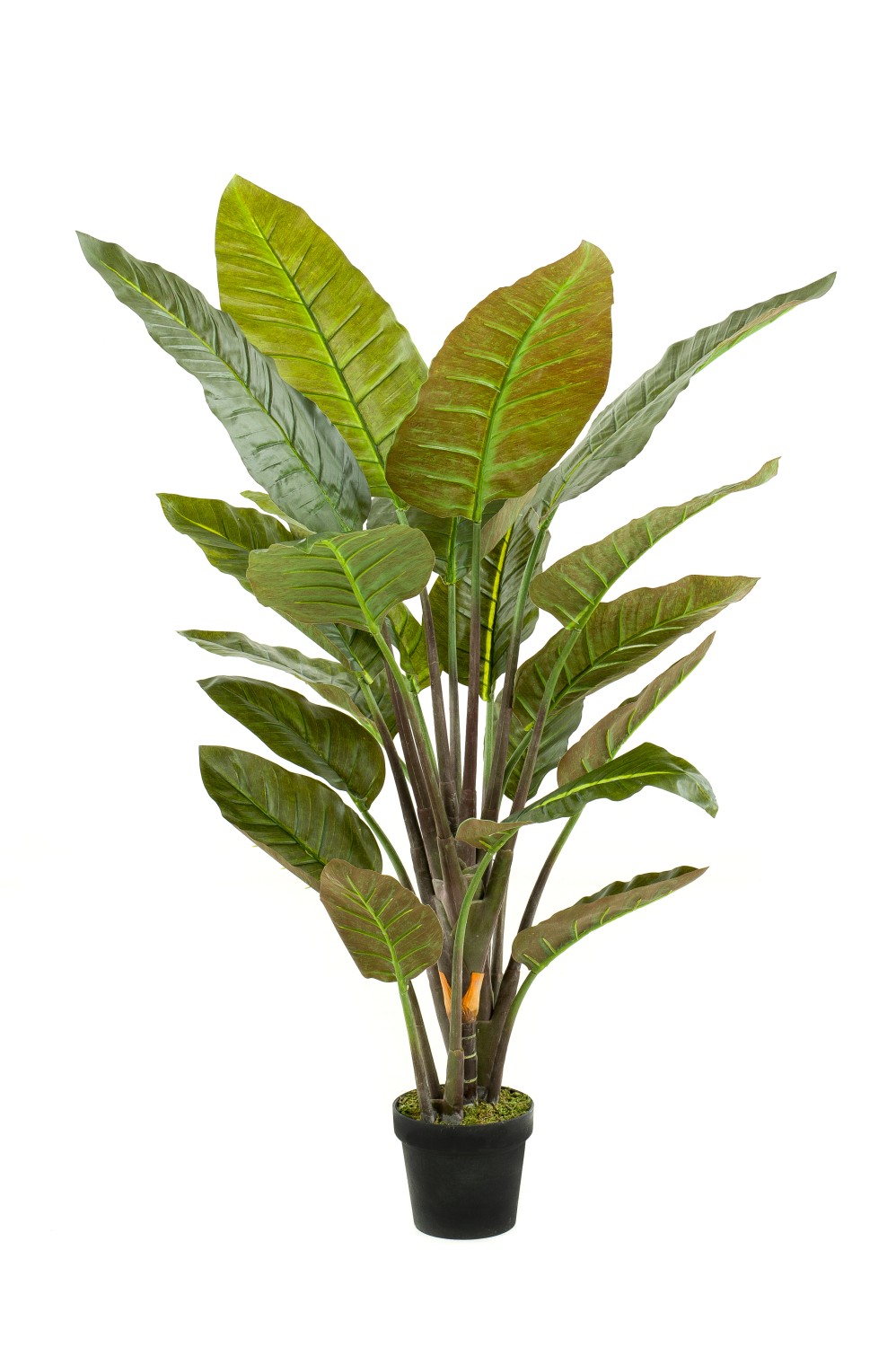 Kunst Strelitzia RIBERA in Farbe grün mit einem Gesamtmaß von ca. 135 cm. Eine natürlich aussehende Dekoration für Ihr Wohnambiente.