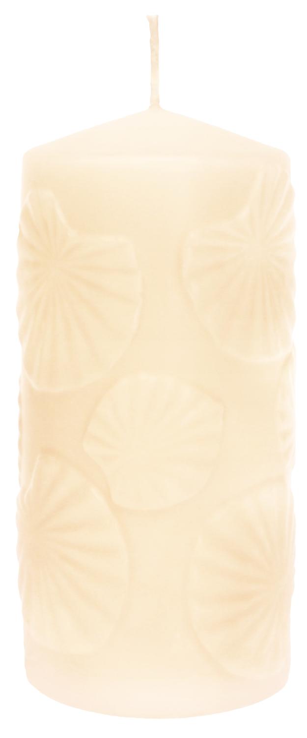 Stumpenkerze ANDRIANE mit Seerosenblatt Motiv, creme, 15cm, Ø7cm, 63h