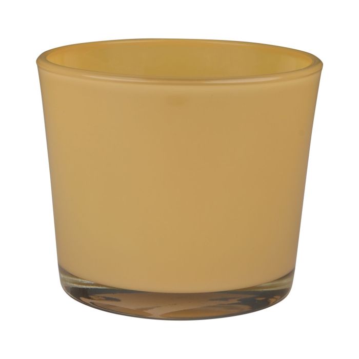 Teelicht Halter ALENA, Glas, Maxi, sandgelb, 9cm, Ø10cm