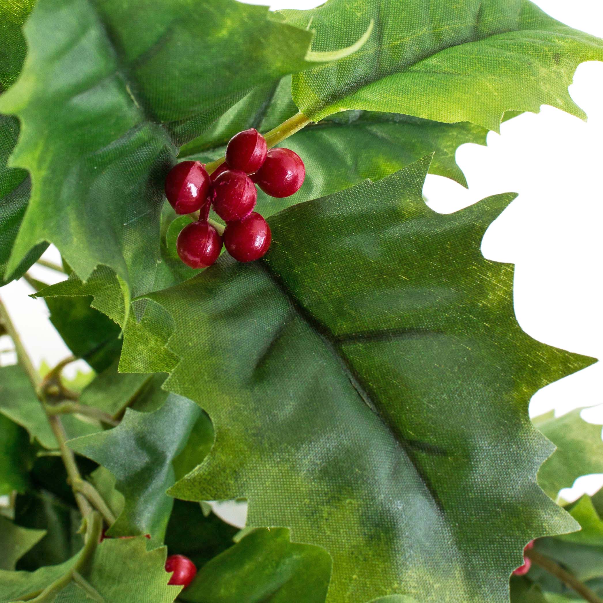 - mit zahlreichen roten Beeren und 90 echt aussehenden gezackten Blättern verteilt auf 9 Zweige