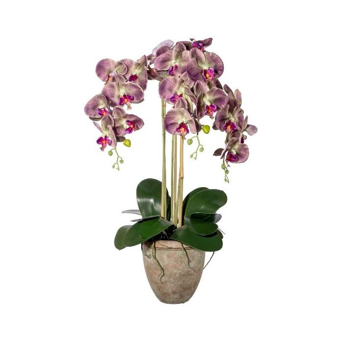 Textil Phalaenopsis Orchidee FRIMTOR im Terracottatopf, Wurzeln, grün-lila, 75cm