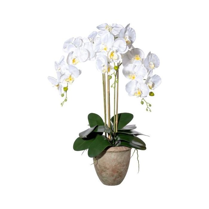Textil Phalaenopsis Orchidee FRIMTOR im Terracottatopf, Wurzeln, weiß, 75cm