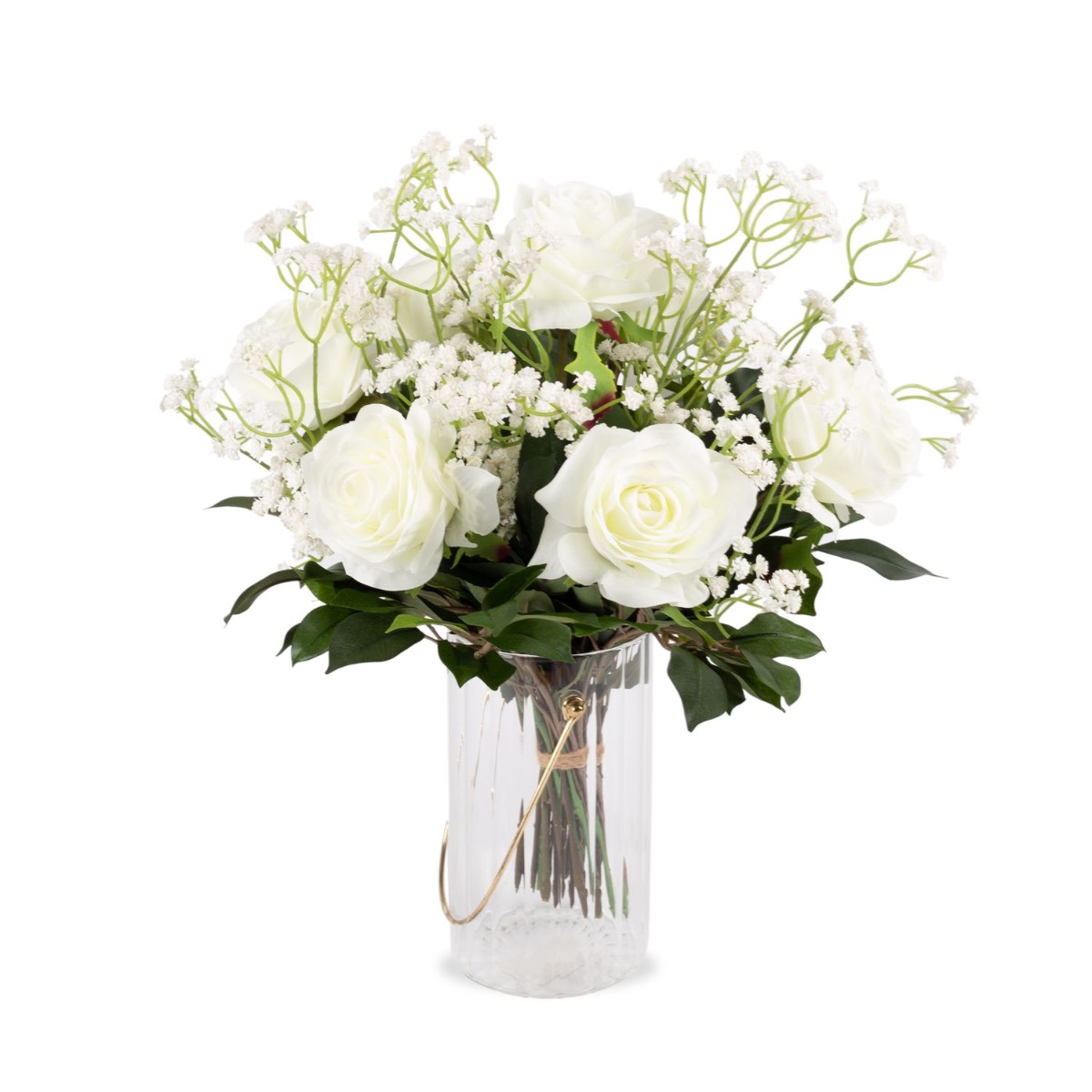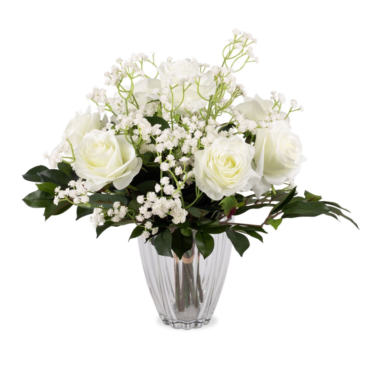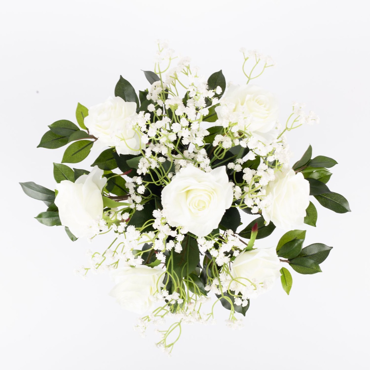 Textil Rosenstrauß ELLI, Schleierkraut, weiß, 35cm, Ø30cm