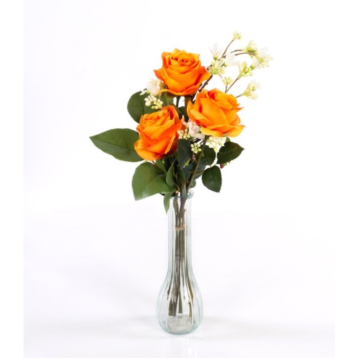 Textil Rosenstrauß SIMONY mit Beiwerk, orange, 45cm, Ø20cm