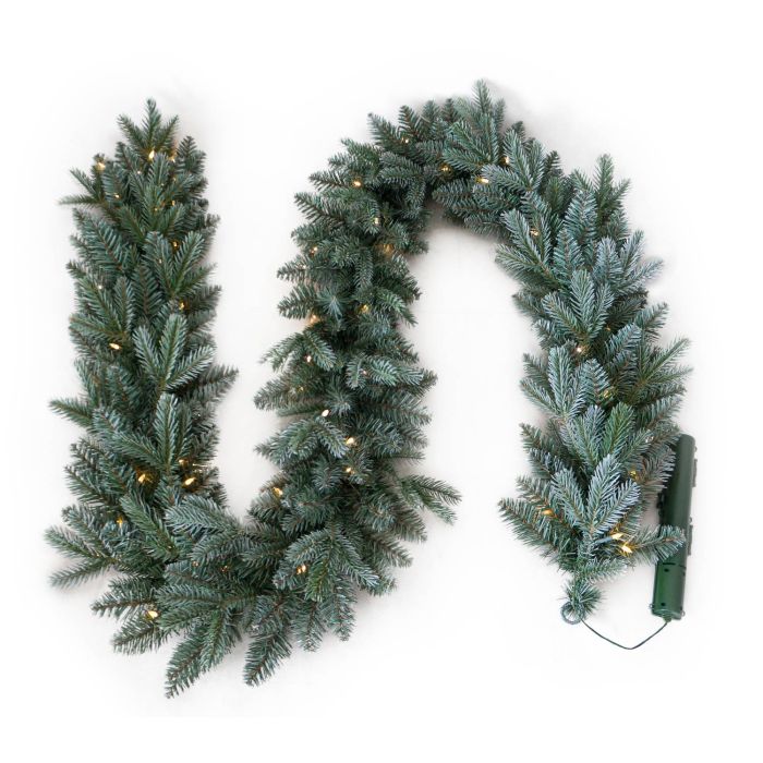 - Schlichte künstliche Tannengirlande mit Frosteffekt und LEDs als Grundlage zur individuellen Gestaltung