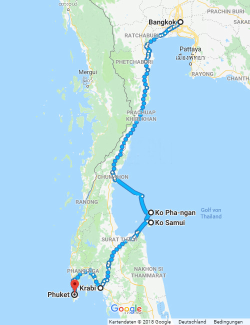 Unsere Reiseroute deckte den Süden Thailands ab.