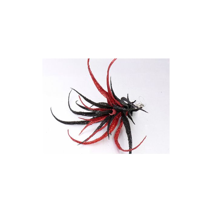 Tillandsia Kunstpflanze Stricta TESAK auf Clip, Glitzer, schwarz-rot, 17cm