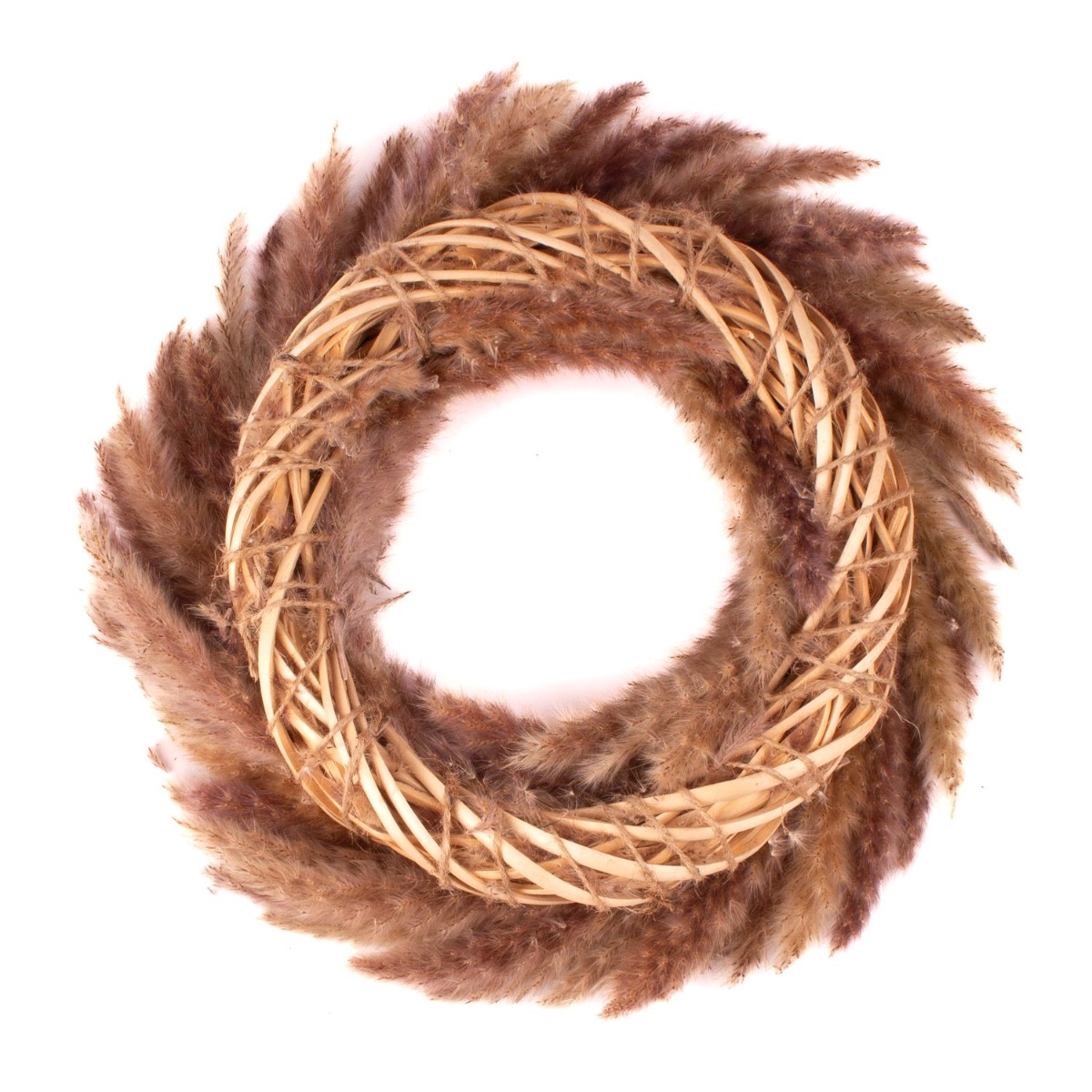 - Der Kranz ist aus Pampasgras gebunden