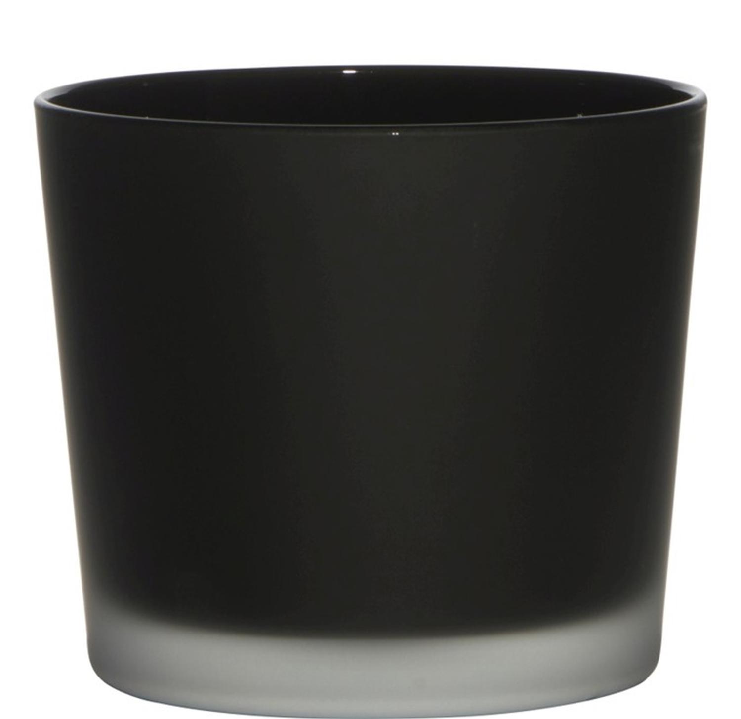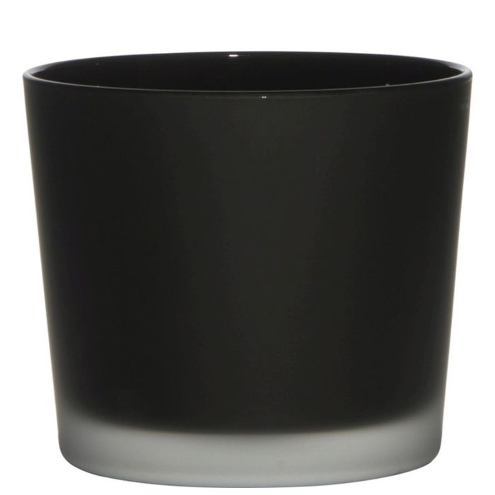 Glas Übertopf ALENA FROST von INNA Glas in Farbe schwarz matt. Der elegante Blumentopf mit seinem Durchmesser von ca. 14,5 cm und der Höhe von ca. 12,5 cm setzt z.B. jede exotische Grünpflanze gekonnt in Szene.