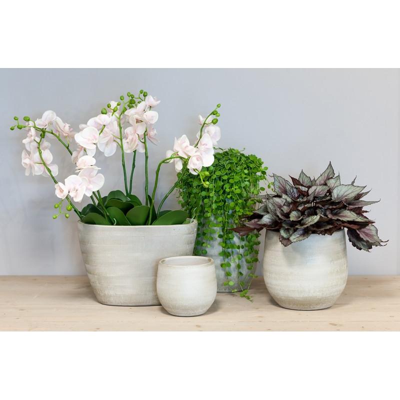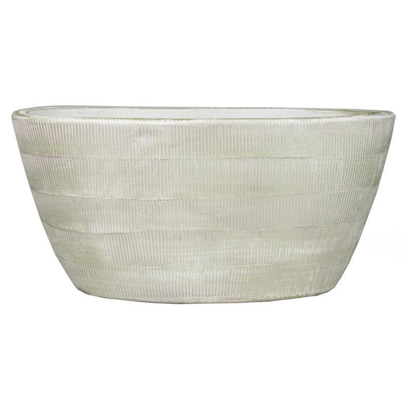 Übertopf DELTA mit Rillen, Keramik, oval, hellgrau-weiß, 30x15x14cm