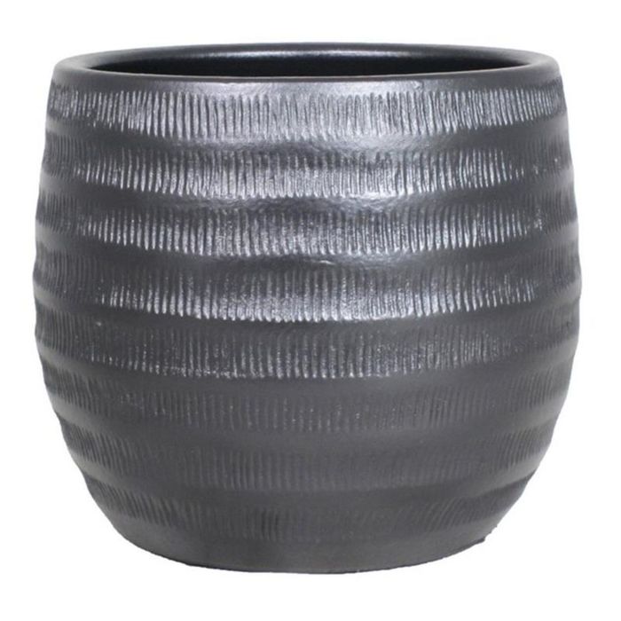Übertopf Keramik TIAM mit Rillen, schwarz-matt, 31cm, Ø34cm