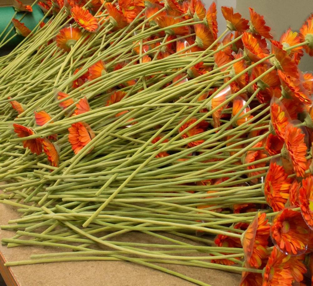 Im Wartebereich ging es dann ganz schön turbulent zu. Jede Kunstgerbera wollte die Erste sein, doch auch wir haben nur zwei Hände und so wurde eine nach der anderen zur Schönheitskur einberufen.
