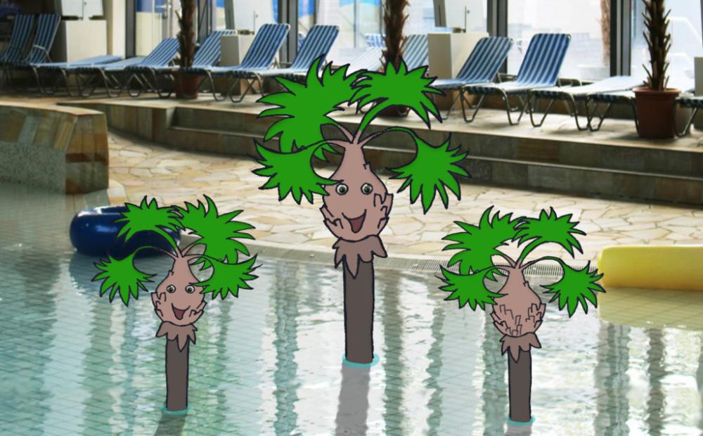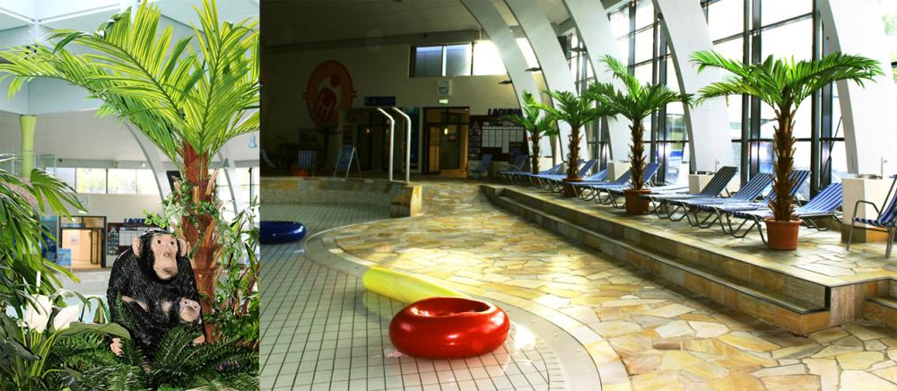 Drei unserer künstlichen Palmen hat es richtig gut getroffen: Sie dürfen ihr Leben im Laguna Badeland verbringen und so bei angenehmen Temperaturen und richtigem Urlaubsfeeling ihre Arbeit erledigen.