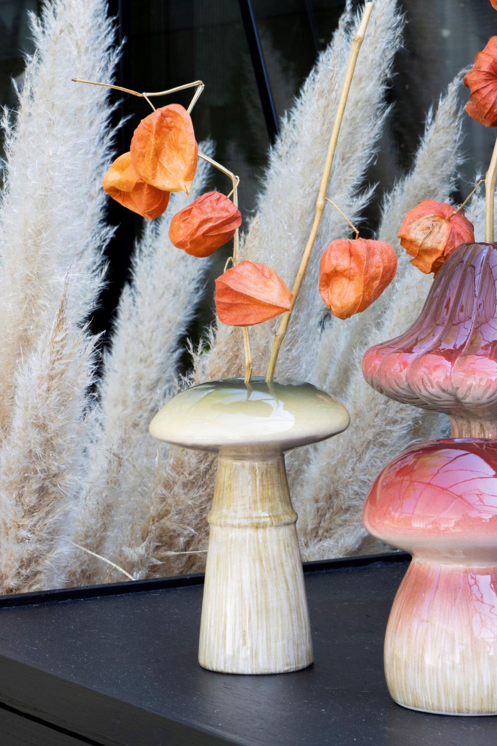 Vase aus Keramik PELISCHA, Pilz Form, grün-creme, 15cm, Ø10cm