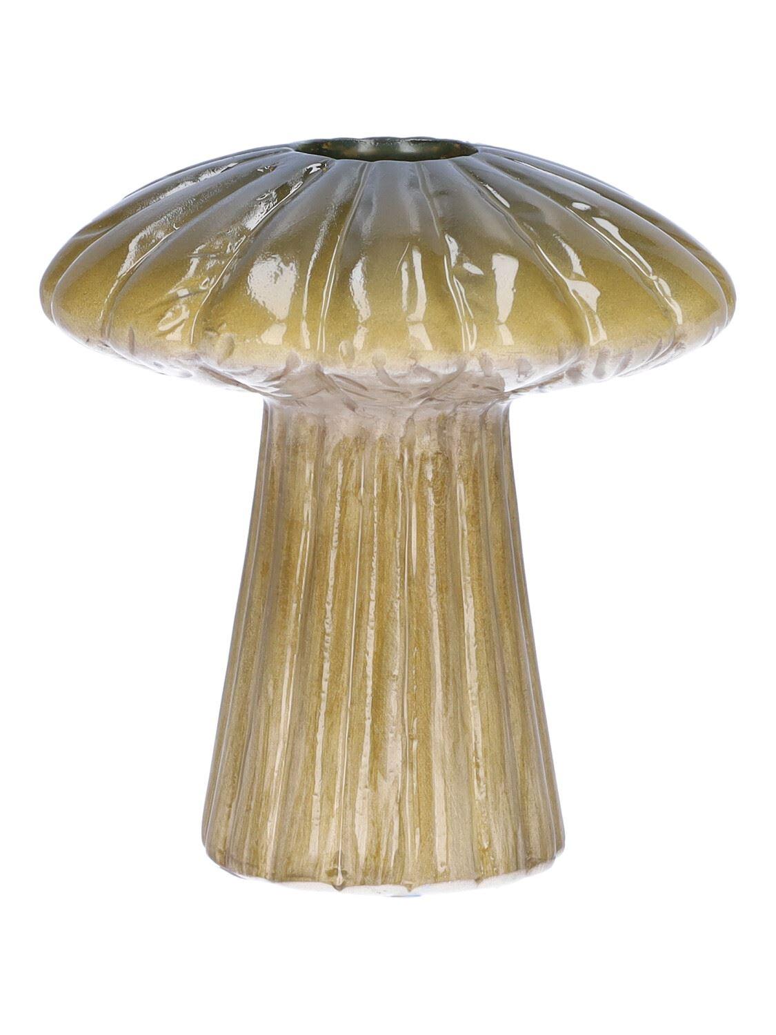 Vase für Blumen RAIMUNDE aus Keramik, Pilz Form, Rillen, grün, 9,5cm, Ø9cm