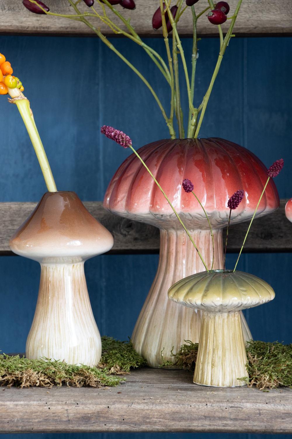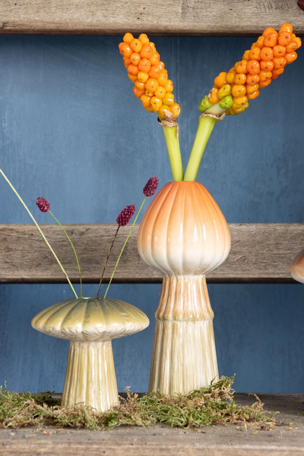 - Die Vase eignet sich perfekt für die Dekoration im Herbst. Stellen Sie den Pilz z.B. in der Mitte von einem geschmückten Kranz, mit bunten Blättern, Zweigen oder Blumen gefüllt wird Ihr Ensemble zu einem prachtvollen Anblick auf Ihrem Wohnzimmertisch, auf dem Empfangstresen im Hotel oder im Restaurant