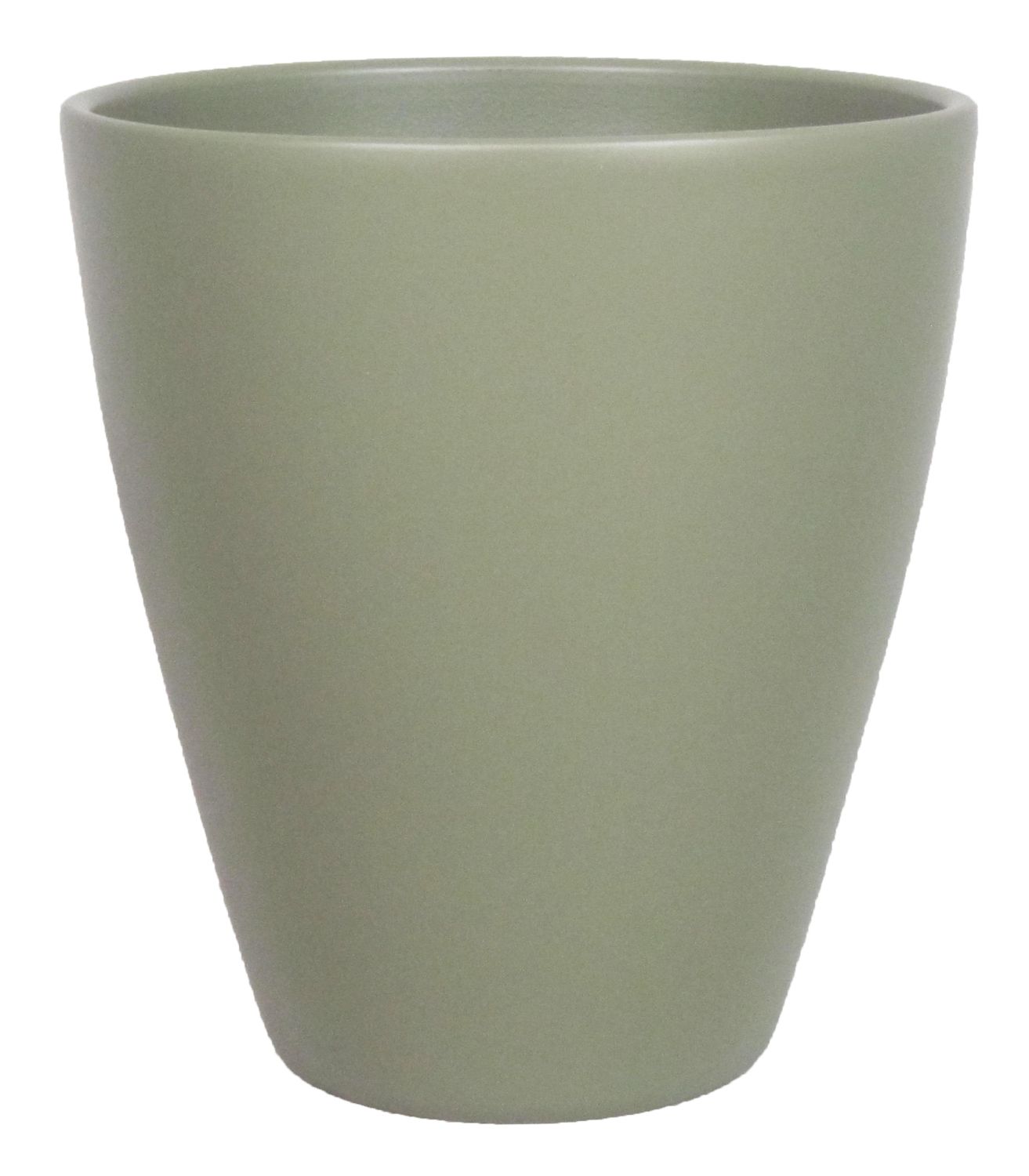Topf aus Keramik TEHERAN PALAST von INNA GLAS mit den Maßen 17 cm; Ø 13,5 cm. Der Übertopf in Farbe olivgrün-matt ist besonders für hohe schlanke Topfpflanzen empfehlenswert.