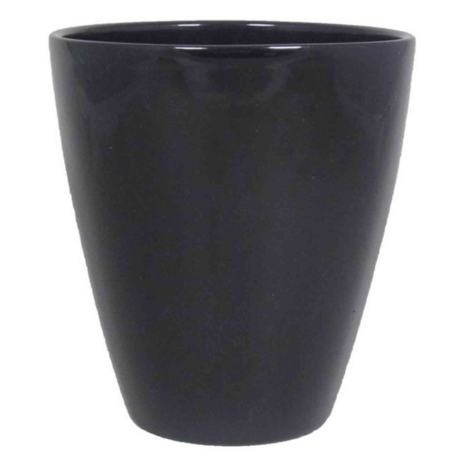 Topf aus Keramik TEHERAN PALAST von INNA GLAS mit den Maßen 17 cm; Ø 13,5 cm. Der Übertopf in Farbe schwarz ist besonders für hohe schlanke Topfpflanzen empfehlenswert.