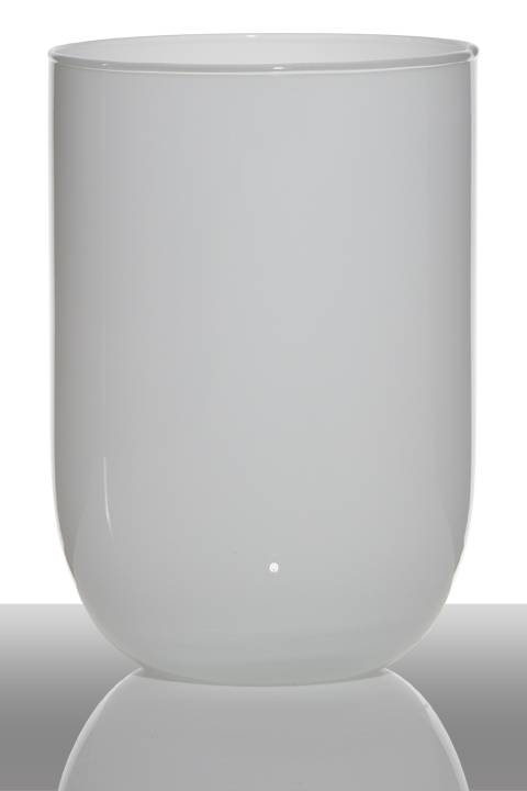 Vase aus weißem Glas MARISA von INNA GLAS. Mit den Maßen 20 cm; Ø 14 cm bietet sie auch für eine Stumpenkerze ausreichend Platz.