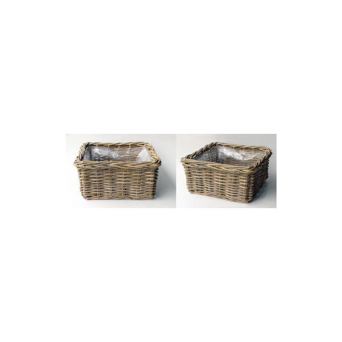 Viereckiger Pflanzkorb RULANA aus Rattan, braun, 30x30x15cm