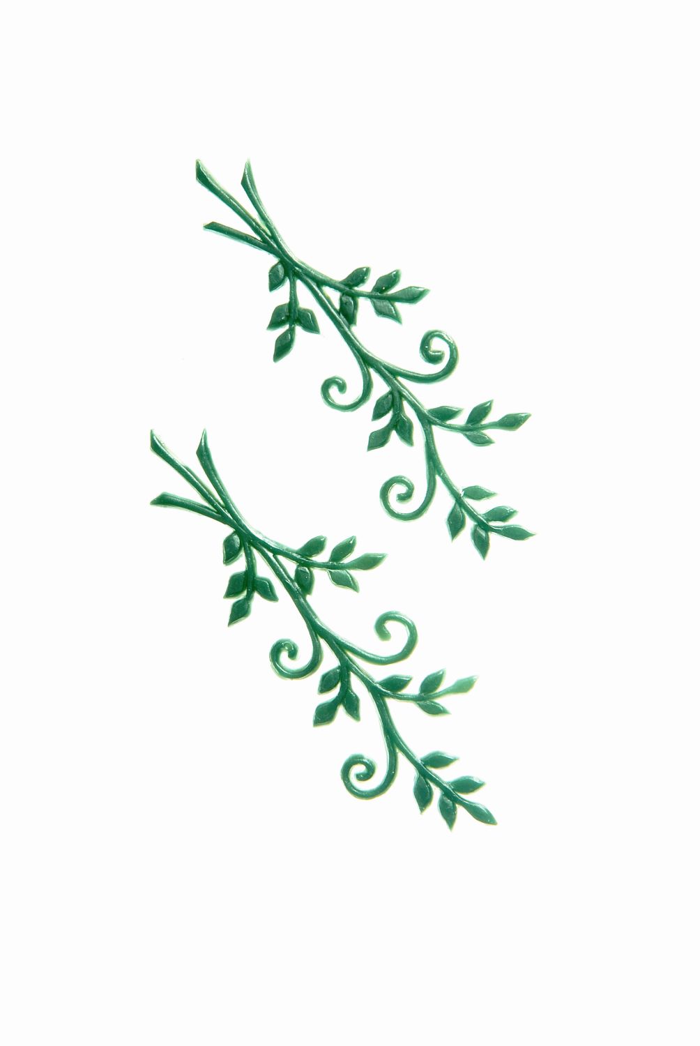 Wachsornament Zweige WITALINA, 2 Stück, dunkelgrün, 8x3cm