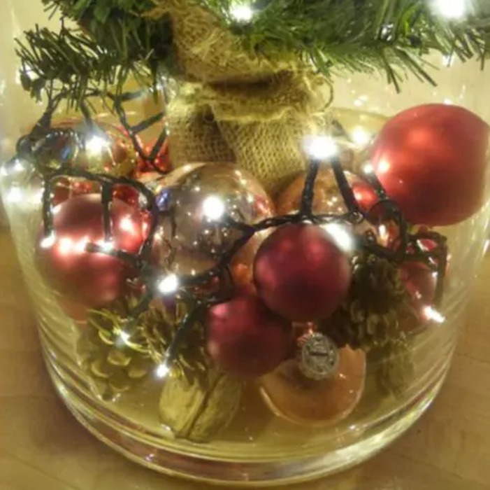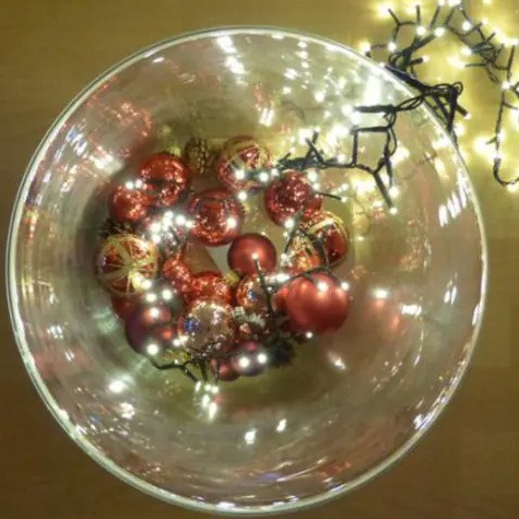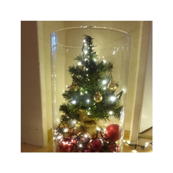 Klein, aber fein! Dass augenscheinlich schlichte Vasen viel Raum für Kreativität bieten, beweist dieser weihnachtliche Look. Denn die hohe und transparente Vase in Zylinderform bringt sowohl die Deko als auch die Beleuchtung im Inneren hervorragend zur Geltung. Mit roten und goldenen Christbaumkugeln sowie der winterlichen Streudeko orientiert sich diese Deko-Idee an klassischen Farben für die Advents- und Weihnachtszeit. Die lange Lichterkette lässt sich sowohl in der Deko als auch um den Baum drapieren und macht den Look zum festlichen Blickfang in jeder Einrichtung. Wer bei dieser Deko-Idee Hilfe benötigt, findet in unserem Blogartikel "Corona-konformer Weihnachtsbaum" eine genaue Anleitung zur Umsetzung. Shop the Look!
