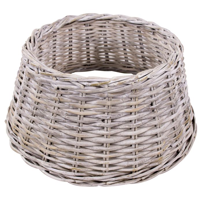 - Hochwertiger Korb für Weihnachtsbaumständer aus Rattan in Farbe weiß gekalkt