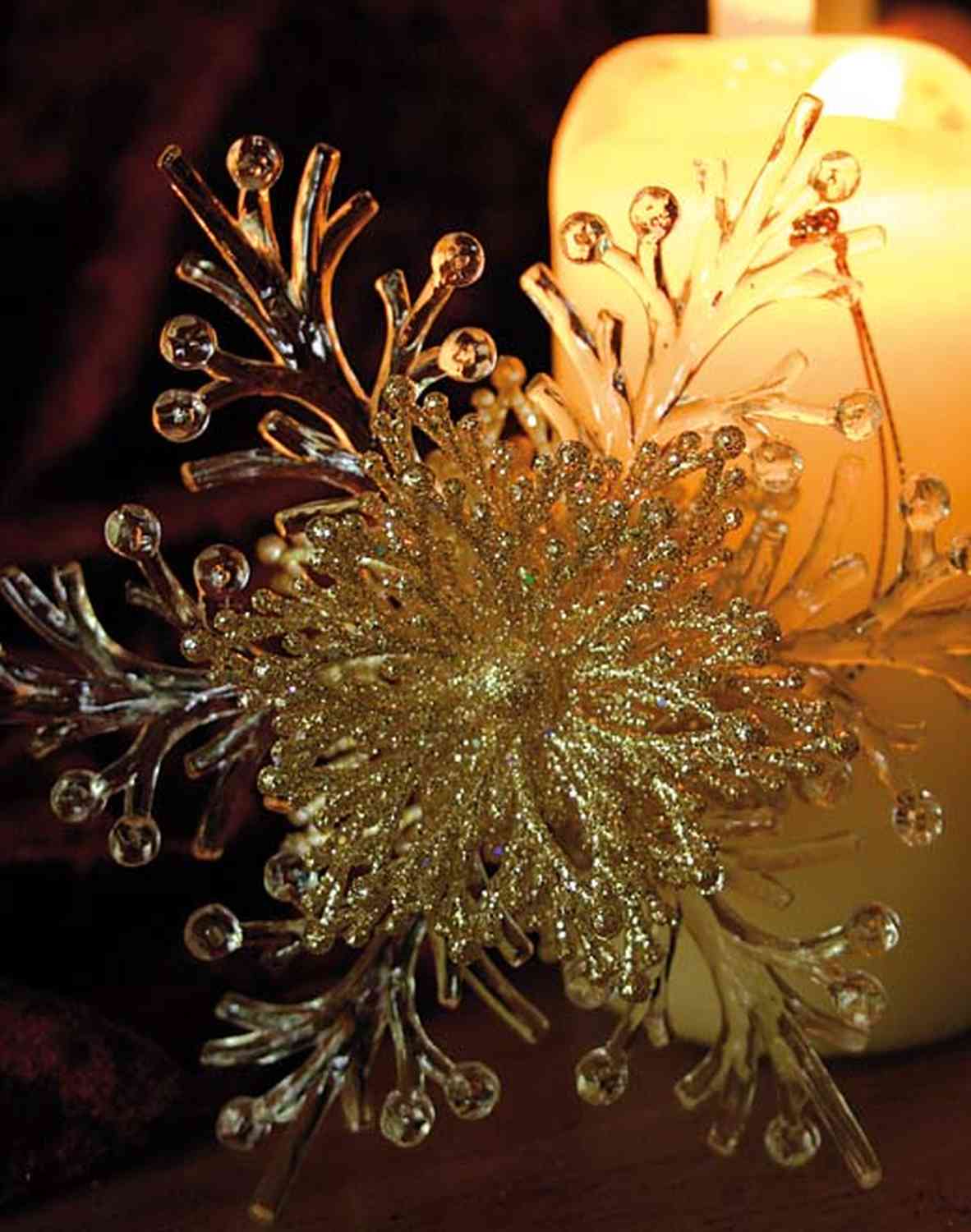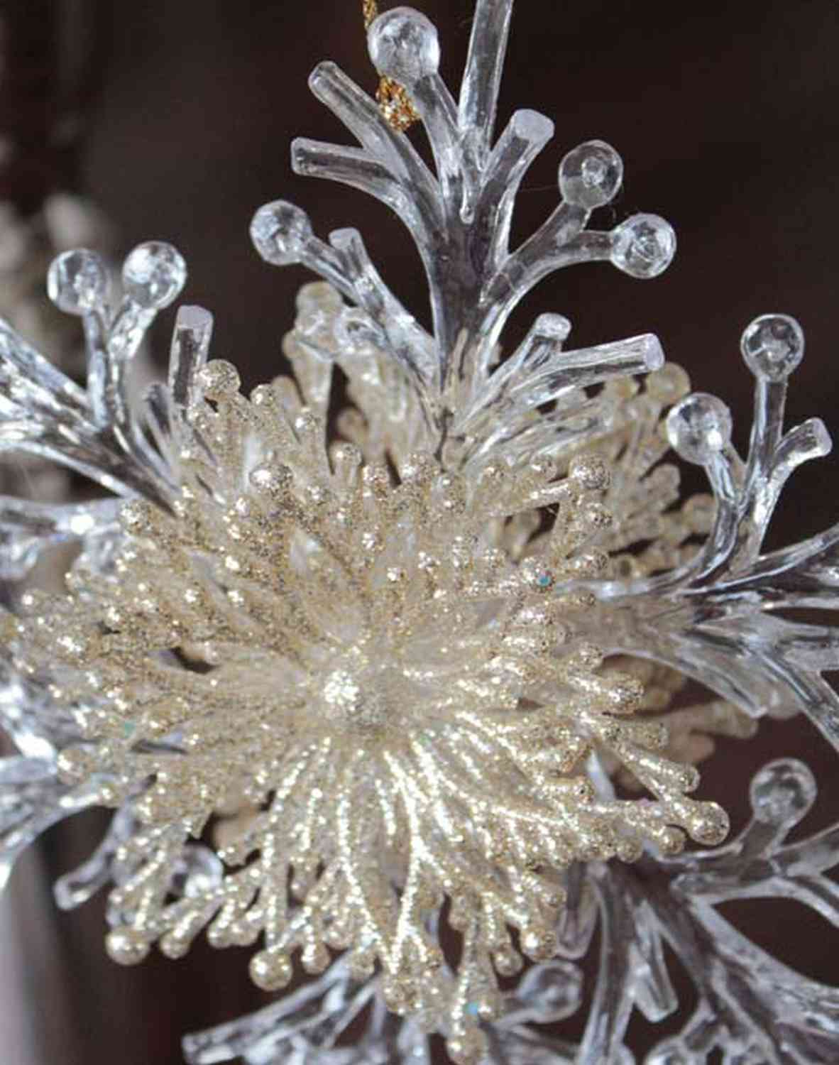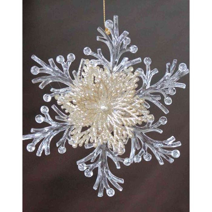 Weihnachtshänger Schneeflocke BALADI, Acryl, Glitzer, transparent-gold, Ø15cm