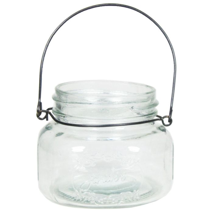 Windlicht DACLAN aus Glas, Metallhenkel, klar, 9cm, Ø10,5cm